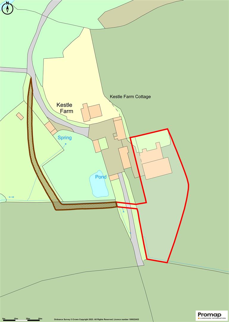 The package available and included within the sale is outlined in red. Please note that the proposed purchaser will share a right of way across the brown hatched driveway.