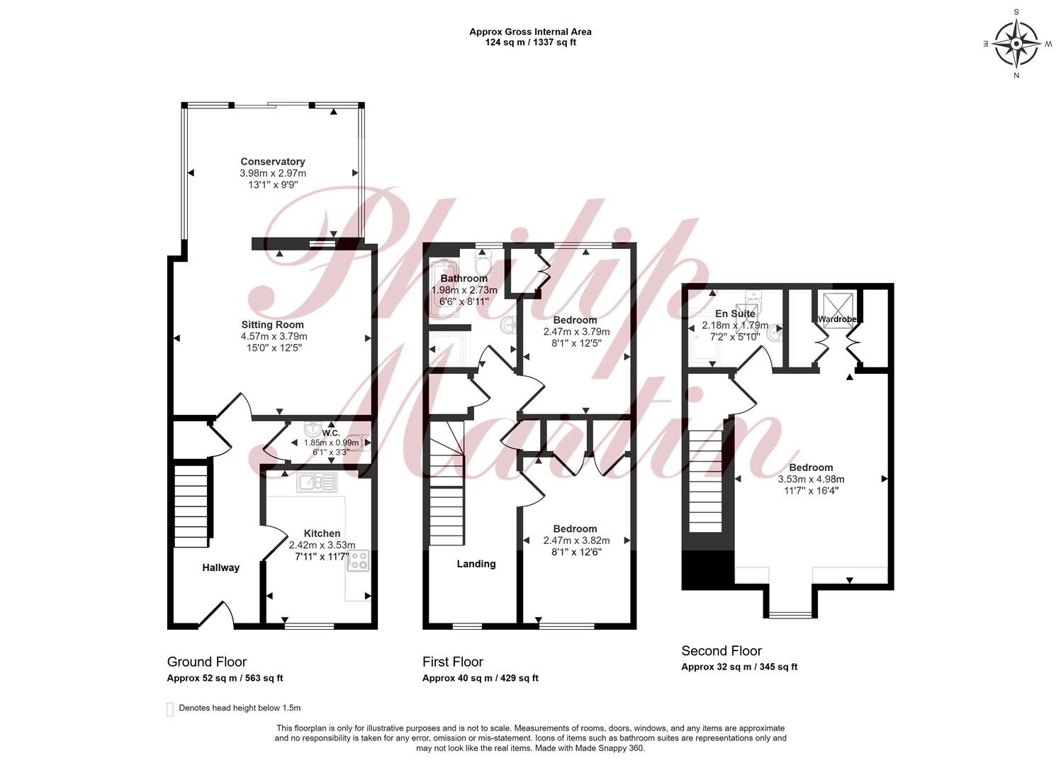 Open and light landing space with a useful study/working from home station with window to front. Stairs rising to second floor and doors into;