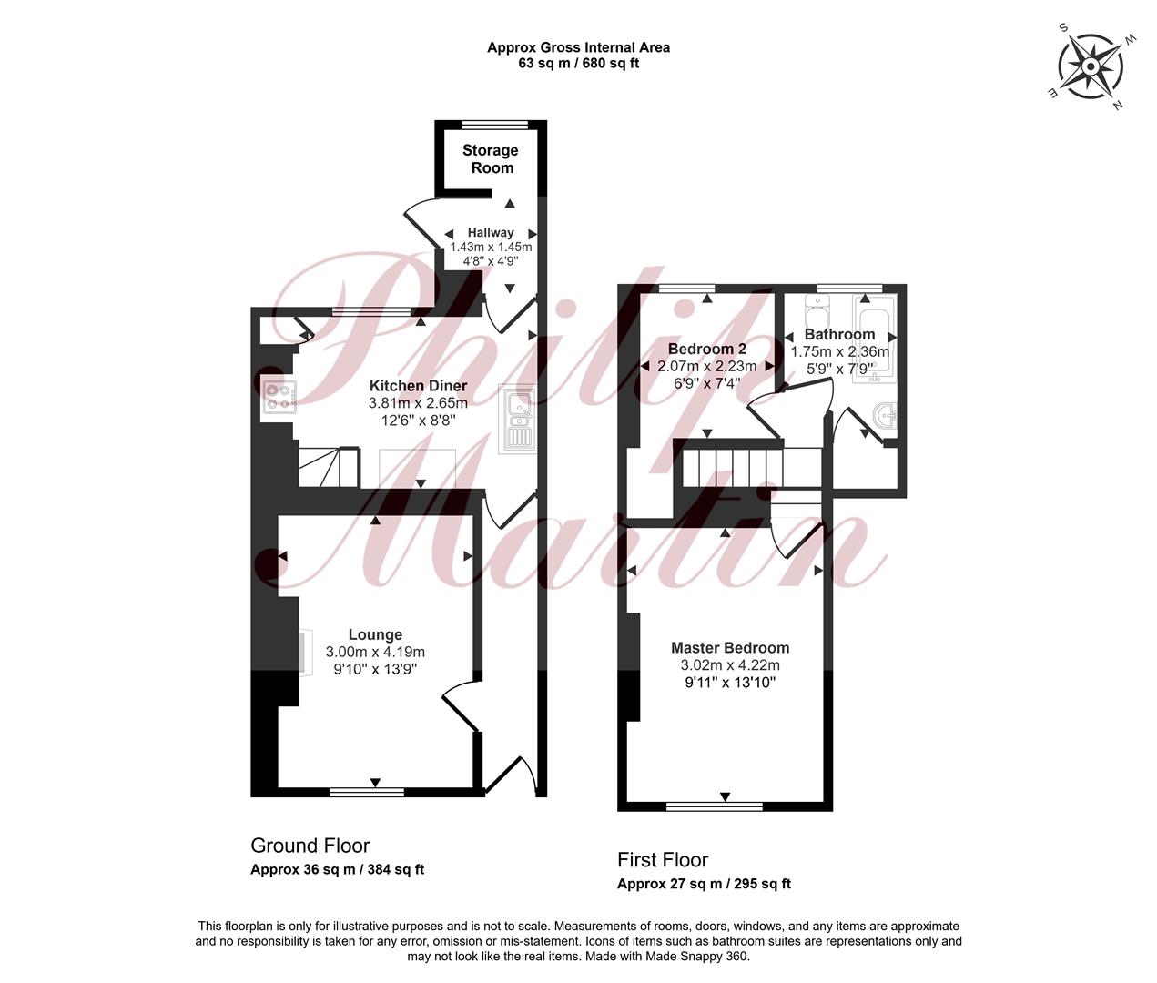 Comprising bath with shower over, pedestal hand wash basin and low level w.c. Window to rear and a large, useful storage cupboard.
