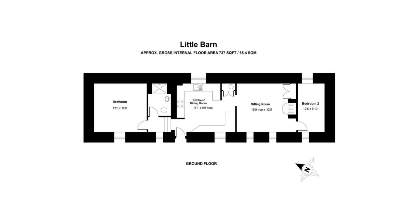 Little Barn is offered for sale leasehold (residue of a 995 year lease from 1990).
