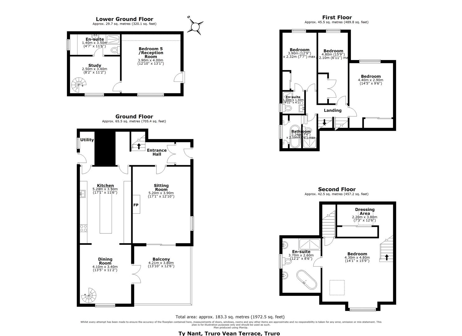 Ty Nant is a wonderful detached property situated in the heart of Truro, with fantastic views of the Cathedral and within just a short walk from the city centre. The property has been magnificently modernised during the current ownership, with brand new kitchen and multiple bathroom suites, the incorporation of the lower ground level into the main house and general decoration throughout including new carpets. Beautifully presented, in all, the accommodation comprises; entrance porch, hallway, sitting room, balcony and kitchen/dining room to the entrance floor, steps up to three bedrooms (en-suite) and a family bathroom, with further steps up to a master bedroom with an en-suite bathroom and dressing area. The property also has a spiral staircase dropping to the lower ground level where there is a study, utility/shower room and bedroom with separate external access. This is a versatile space that used to be an annexe and could easily be reverted. There are two storage spaces with access down both sides of the property to the rear garden that is laid to lawn with multiple mature shrubs and plants with a stream running along the bottom boundary.