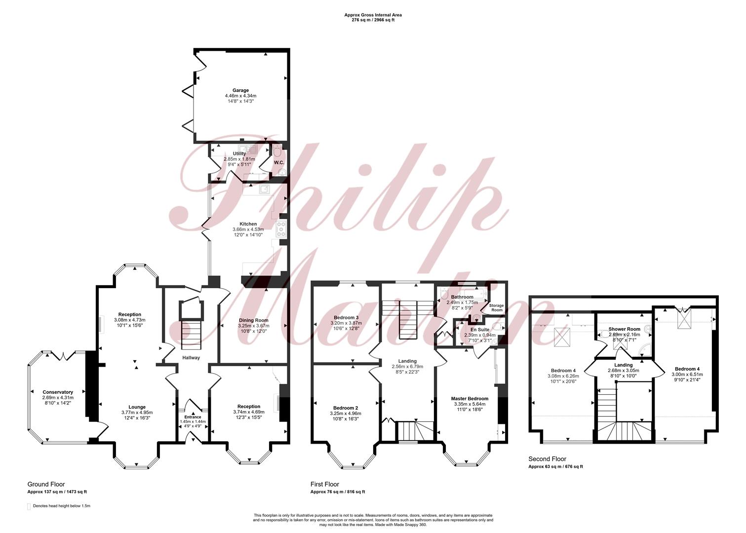 Arranged over three floors and extending to nearly 3,000 sq ft, the property offers spacious and versatile accommodation. The ground floor comprises four reception rooms, including a formal dining room and a conservatory, along with a well-appointed kitchen with a stunning roof lantern, utility room, and W.C. On the first floor are three generous double bedrooms, including a principal bedroom with en suite, as well as a family bathroom. The second floor offers two further bedrooms and an additional shower room, making it ideal for larger families or multi-generational living.