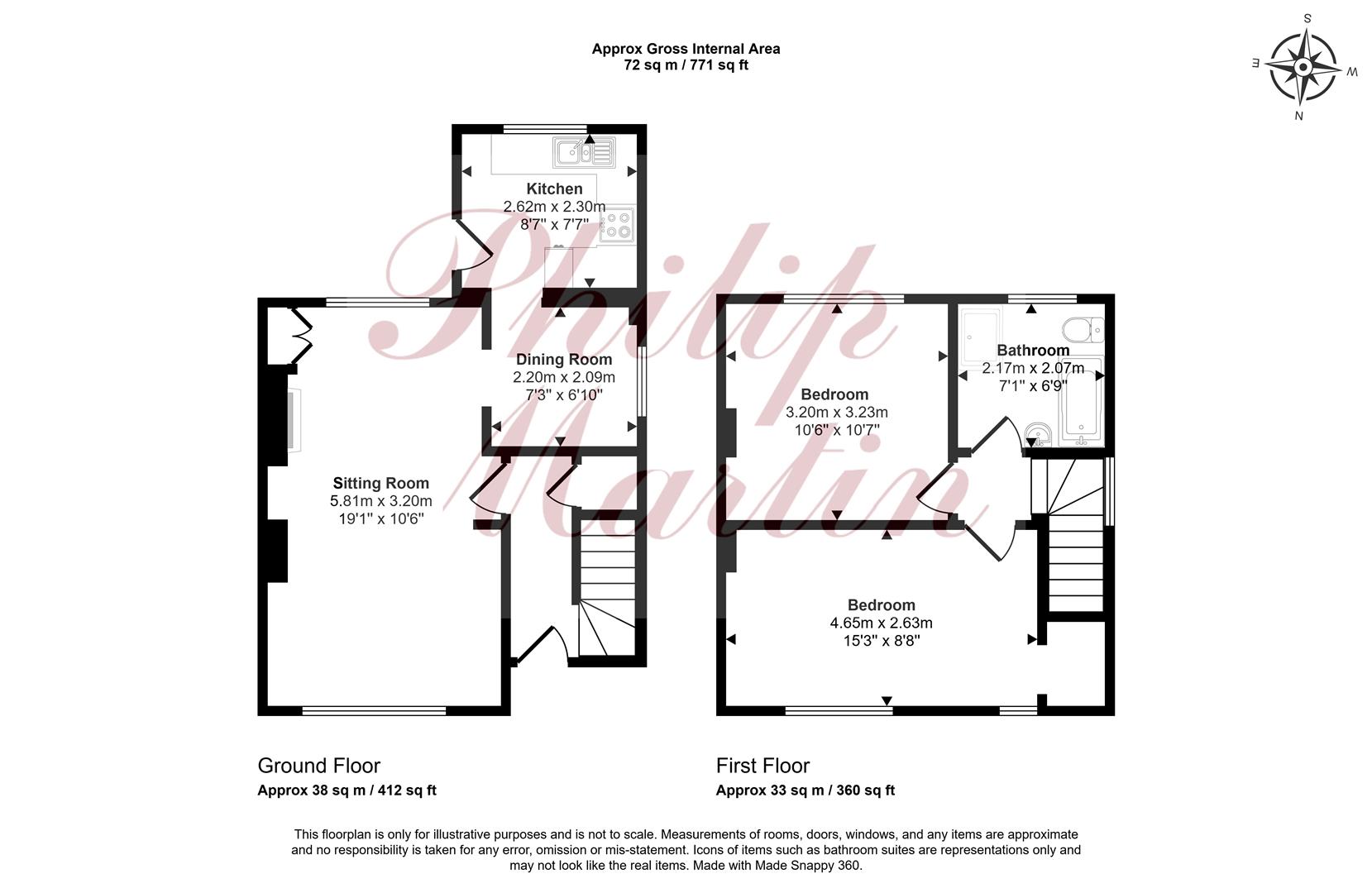 With access via loft ladder to spacious floor boarded loft which has good headroom with potential to convert. Doors into;