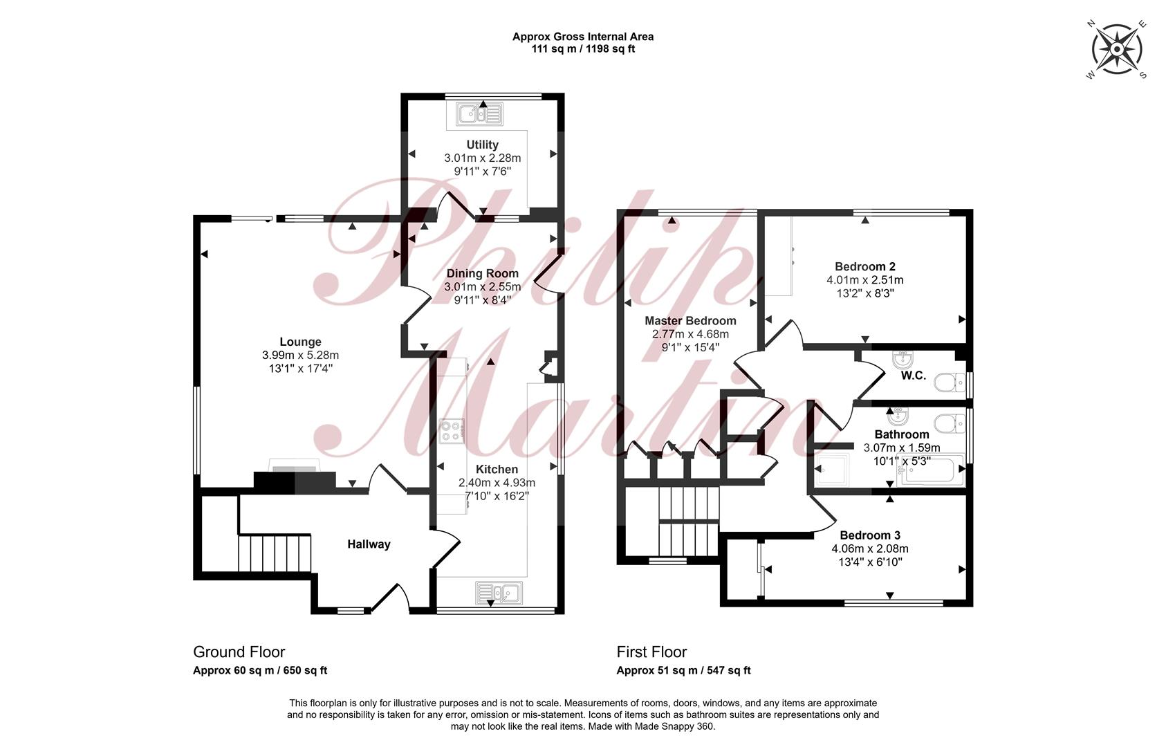 Tiled to half height with enclosed electric shower, bath with mixer tap, low level W.C and pedestal hand wash basin. Frosted window to the rear and radiator.