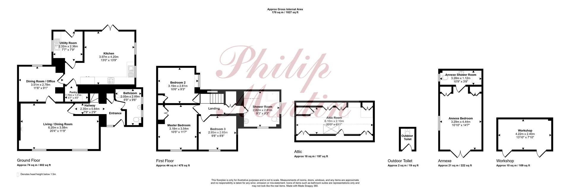 In all, the accommodation comprises:- entrance, bathroom, living room, study, kitchen diner, pantry and utility on the ground floor. To the first floor there are three double bedrooms and shower room. The annexe has one bedroom and shower room. Externally, the property is sat on a nice size plot with driveway parking for multiple cars and mature gardens.