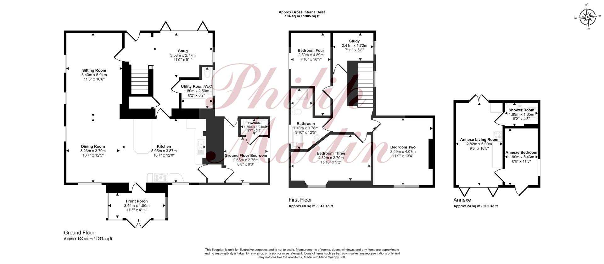 One bedroom annexe comprising a kitchenette/living room, bedroom and shower room.