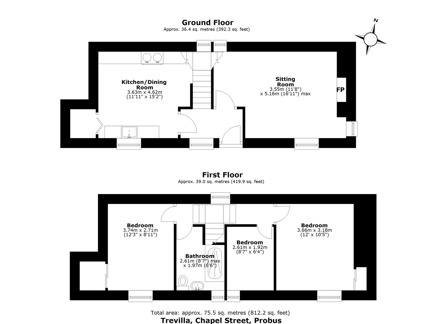 Trevilla is a delightful period cottage located close to the centre of Probus which is one of the most sought after villages in mid Cornwall. The cottage retains many wonderful period features including exposed beams, canopied ceilings and feature fireplace in the sitting room. The property is approached from Chapel Street over a brick driveway that provides parking. The cottage enjoys a sunny, south facing aspect and the garden enjoys privacy and sun all day. Internally the cottage is very well presented and has been improved greatly in recent years with newly fitted kitchen and shower room. The accommodation includes three bedrooms and shower room on the first floor with sitting room and kitchen/dining room downstairs. The property has double glazed windows and mains gas central heating. An internal viewing is essential.