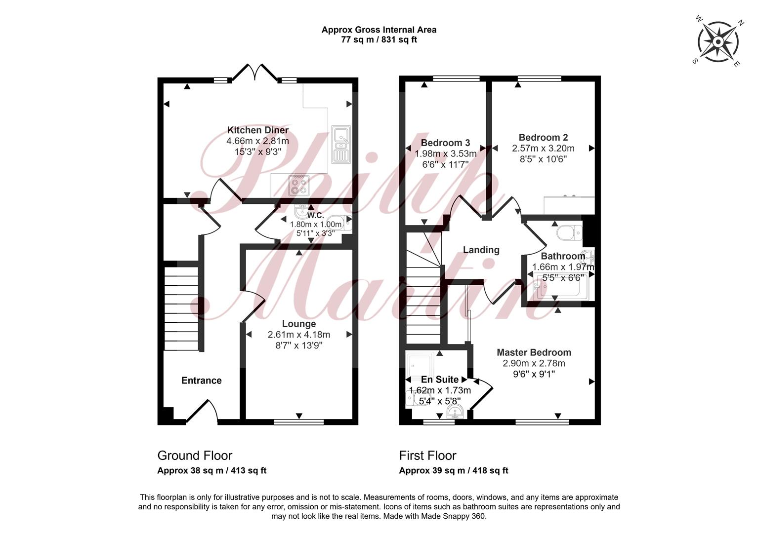 Very well presented, the property benefits from light and spacious accommodation comprising; entrance hall, kitchen/dining room, sitting room, W.C and under stairs storage to the ground floor. Upstairs, there property continues to three bedrooms (master en-suite) and a family bathroom. There is driveway parking for two cars, and a rear garden.