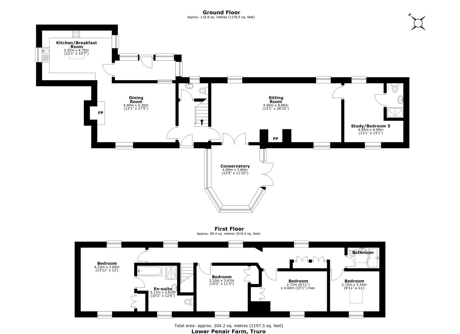 Lower Penair Farmhouse is a very attractive detached period house located in a very convenient position on the outskirts of Truro City centre and within a short walk of Waitrose and excellent schools. The property is larger than it looks from outside with attractive stone elevations and retains many character features throughout including a fabulous inglenook fireplace with two clome ovens in the dining room. The house and gardens are extremely private. The house has a conventional layout over two floors and all the rooms enjoy views over the gardens. There are four bedrooms and bathroom on the first floor, the master has an en suite. The ground floor includes a fitted kitchen, dining room, large sitting room, study (or fifth bedroom) and shower room. The mature gardens are enclosed within dense boundaries with lawns and many mature shrubs and plants and a brick courtyard is located at the rear which enjoys complete privacy. Two driveways provides lots of parking for at least five cars. Across the lane is a superb full size tennis court, further garden and substantial wooden outbuilding. All of the windows and doors are double glazed and there is mains gas fired central heating. A brand new slate roof was added in 2025. The house is sold with no onward chain, an internal viewing is highly recommended.